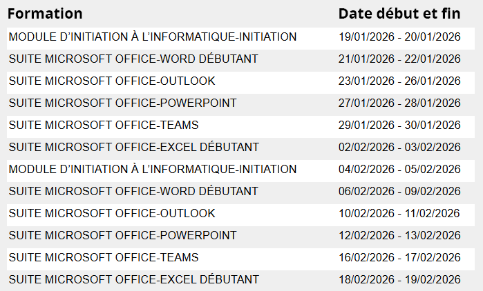 Vous pouvez suivre nos formations en bureautique et informatique de base.